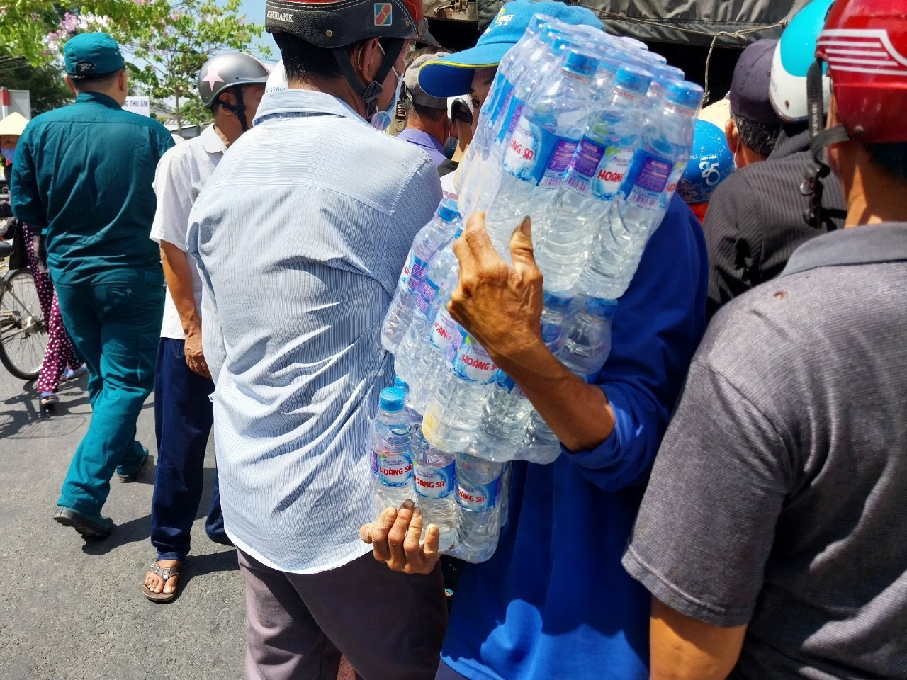 Đoàn thiện nguyện đến để hỗ trợ cấp nước cho xã Tân Phong, huyện Thạnh Phú, tỉnh Bến Tre với số lượng: 2 xe tải nước bồn 4 khối , 400 ngàn lít – cộng thêm 100 can 30 lít, trong đó 50 can nước uống và 50 can nước sinh hoạt số nước đóng chai 700 lốc nước đóng chai 500 ml lốc để hỗ trợ nơi đây.