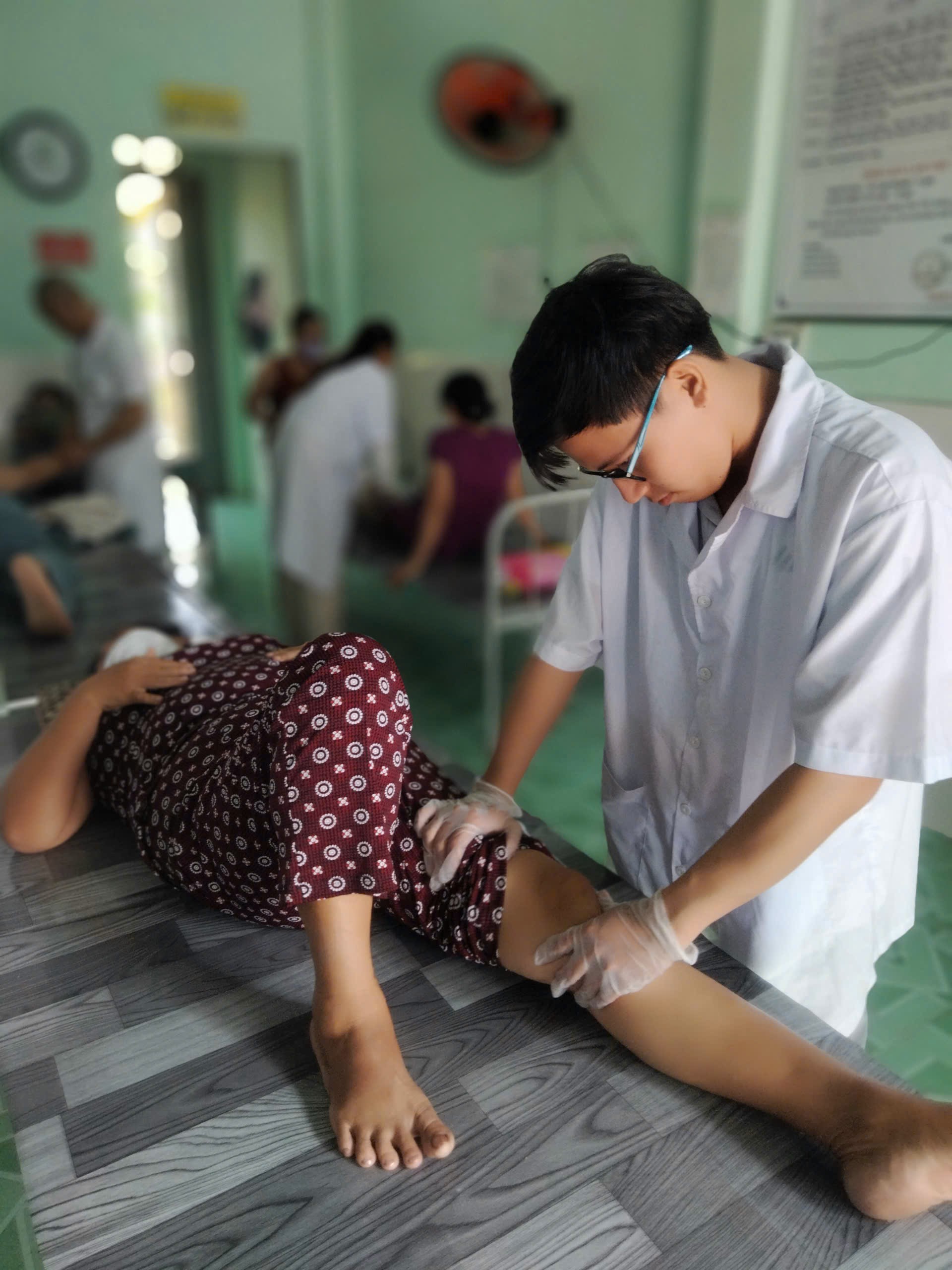 các y sĩ kỹ thuật viên tham gia xoa bóp ấn huyệt trong công tác thiện nguyện chi hội