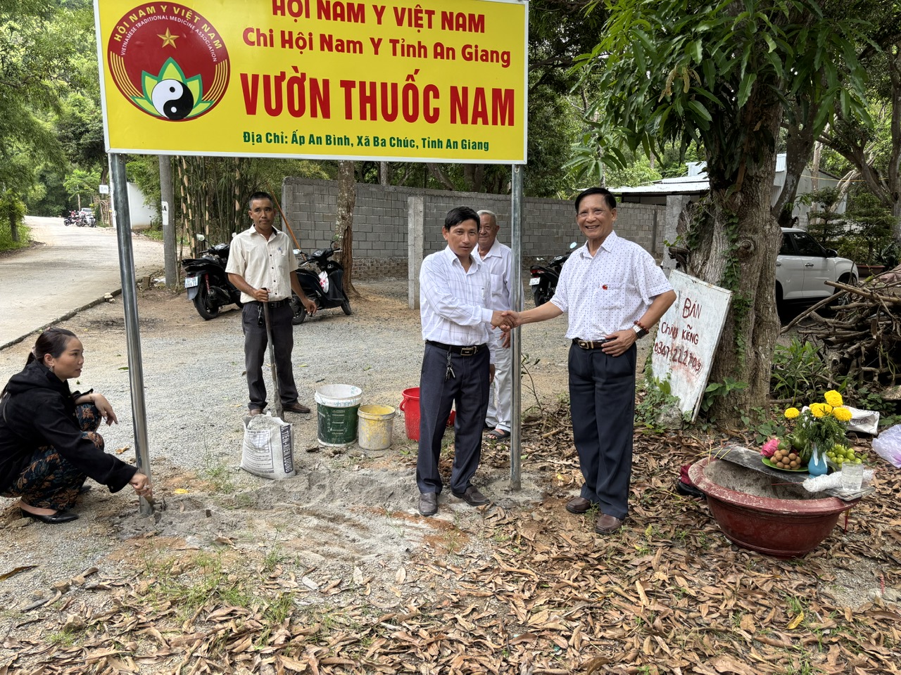 Nhân dịp này, đại diện Ban lãnh đạo Chi Hội mời thầy Đỗ Sơn Hà tổng thư ký Hội Nam Y Việt Nam tham gia cùng với chính quyền địa phương dựng bảng “vườn thuốc nam Chi hội Nam Y An Giang”.
